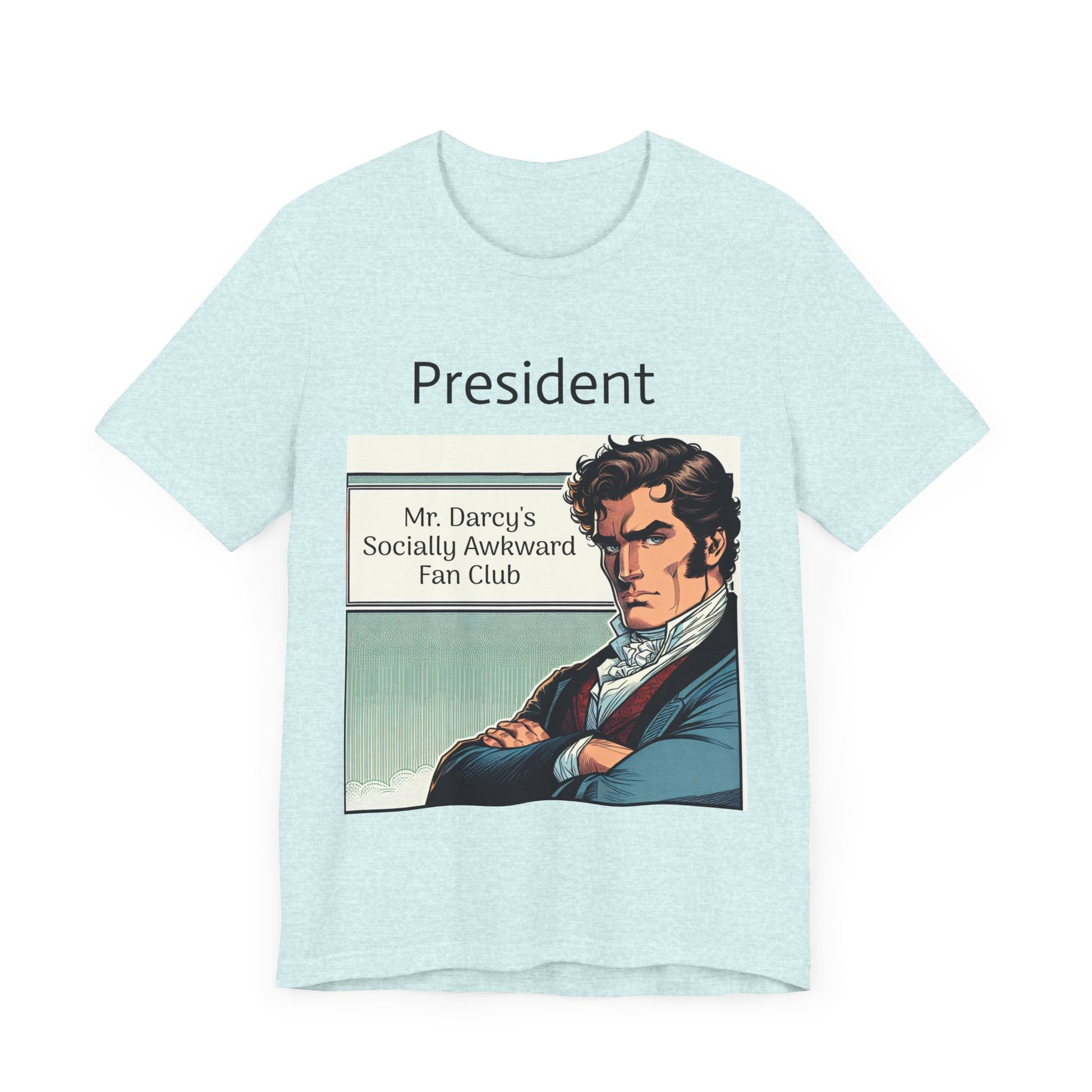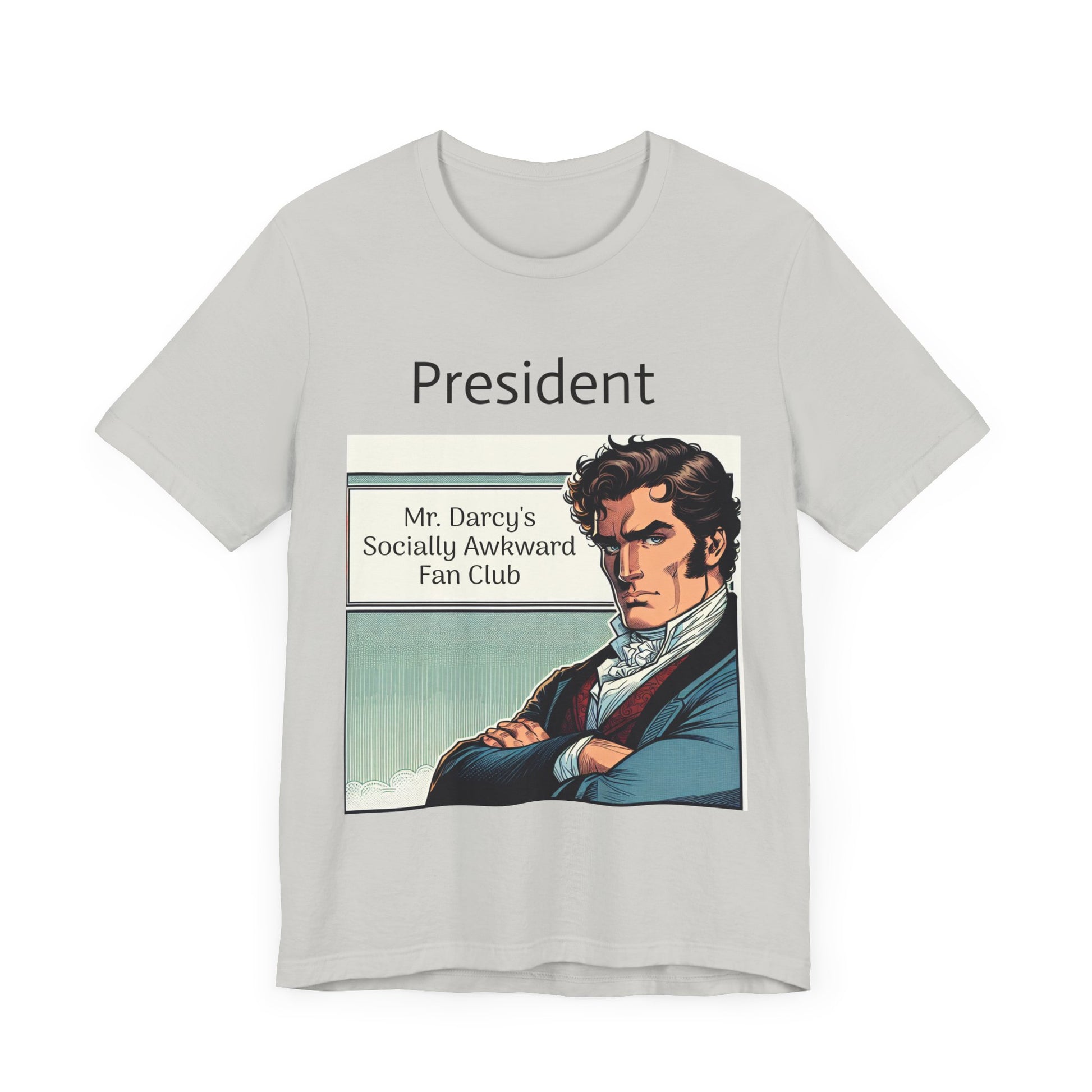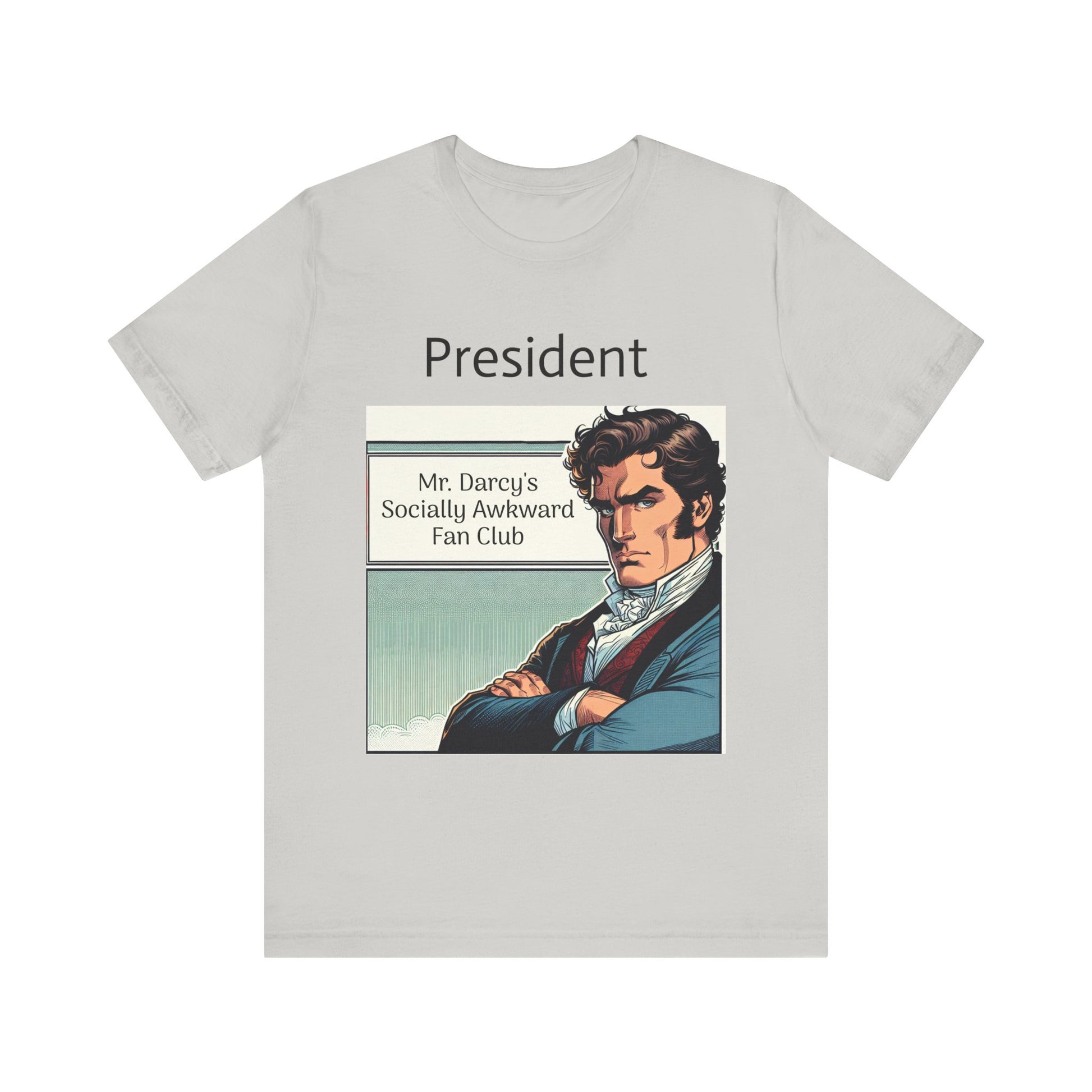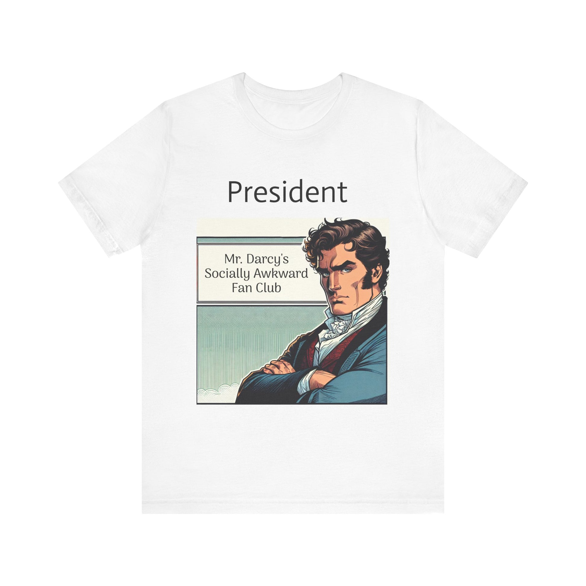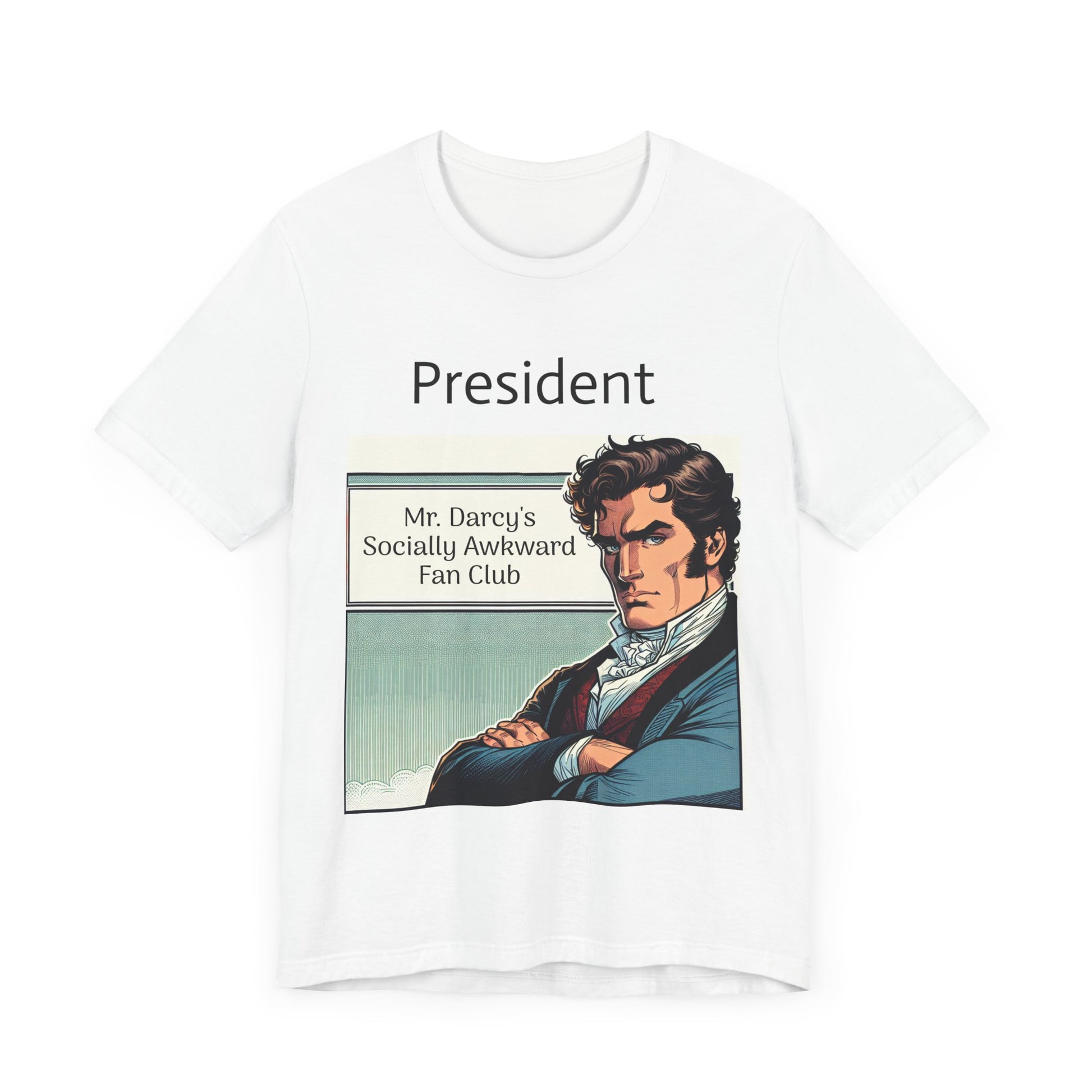 This "Mr. Darcy's Socially Awkward Fan Club" classic unisex jersey short sleeve tee fits like a well-loved favorite. Soft cotton and quality print make users fall in love with it over and over again. These t-shirts have-ribbed knit collars to bolster shaping. The shoulders are tapered for a better fit over time. Dual side seams hold the garment's shape for longer.