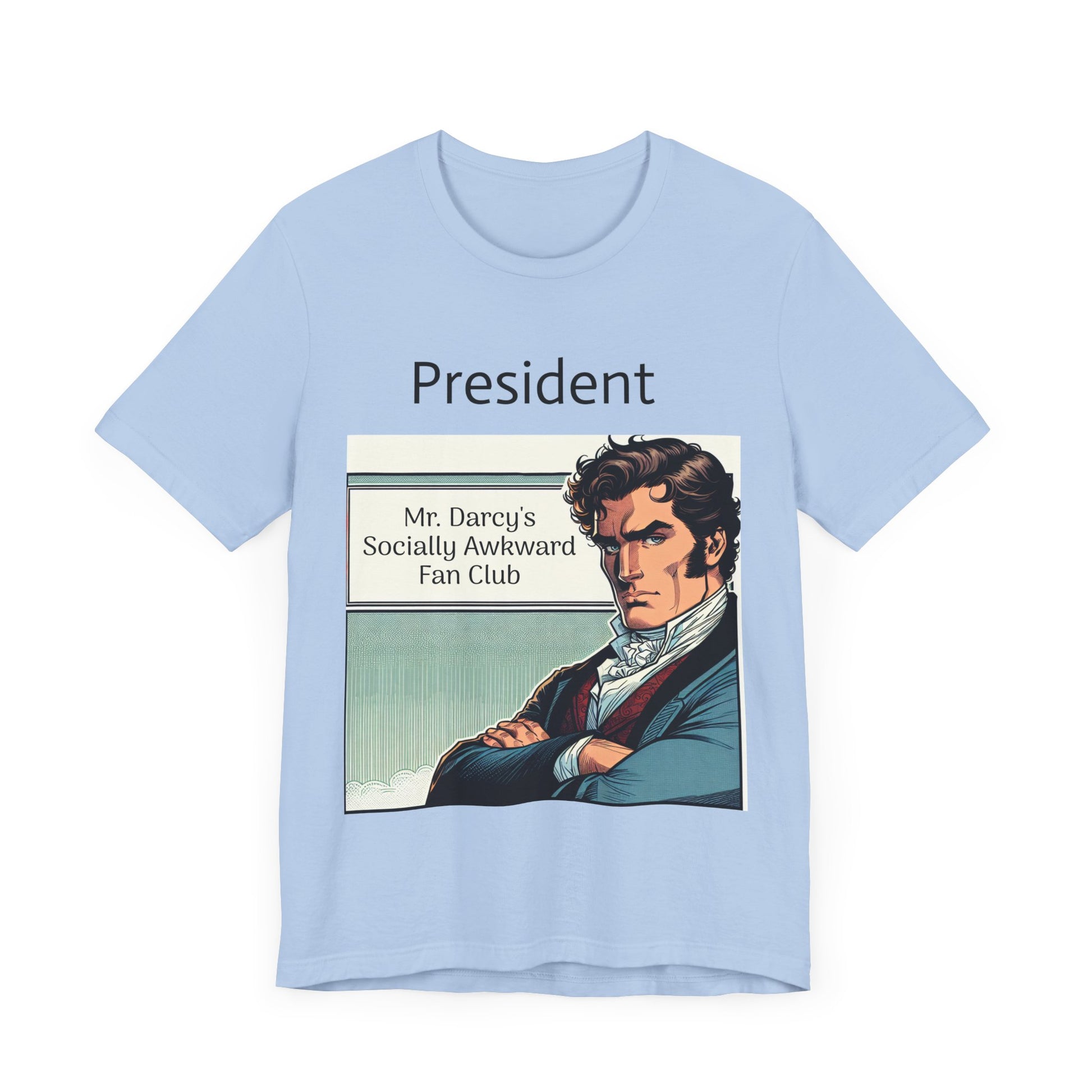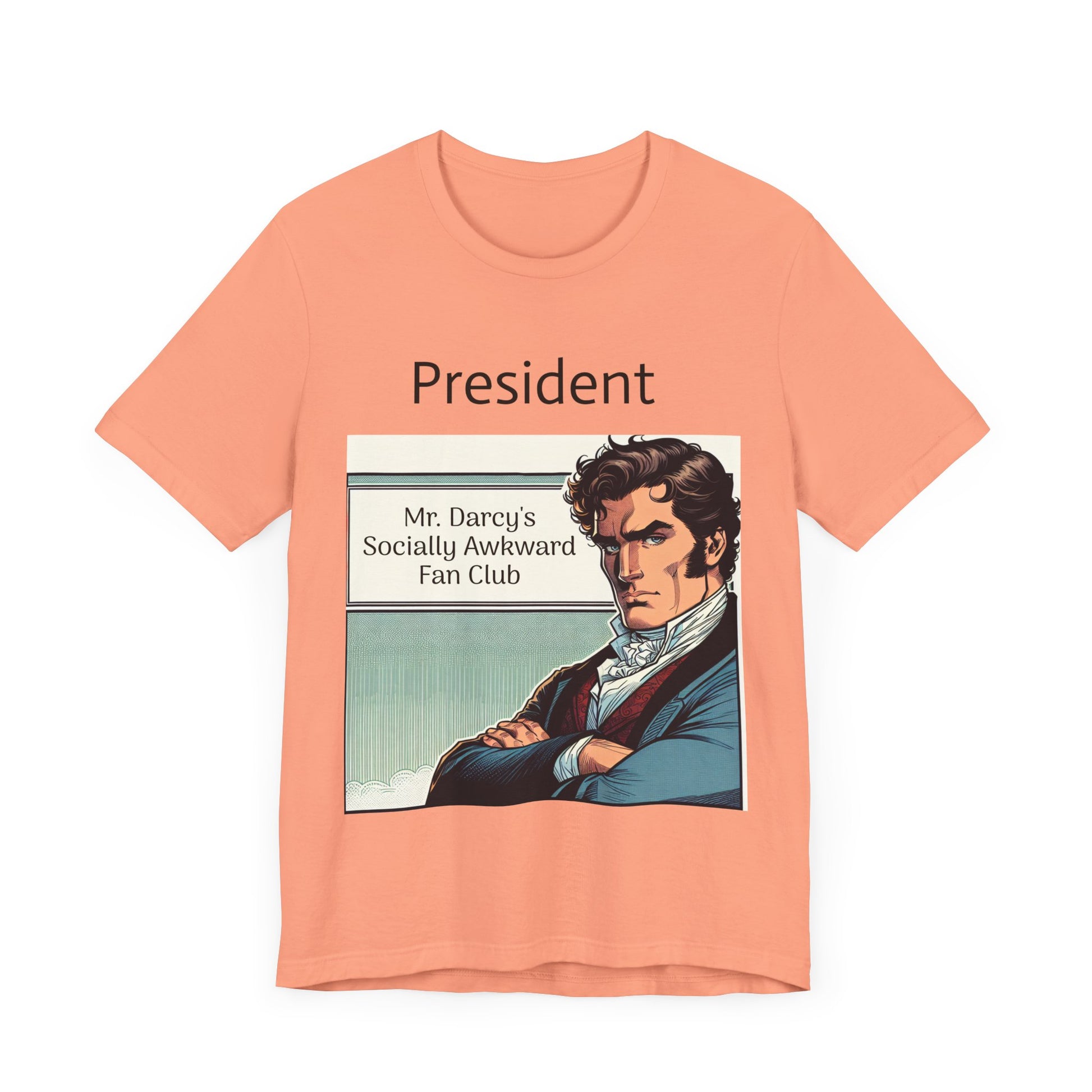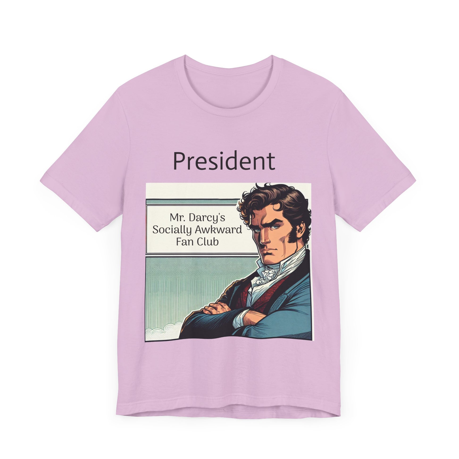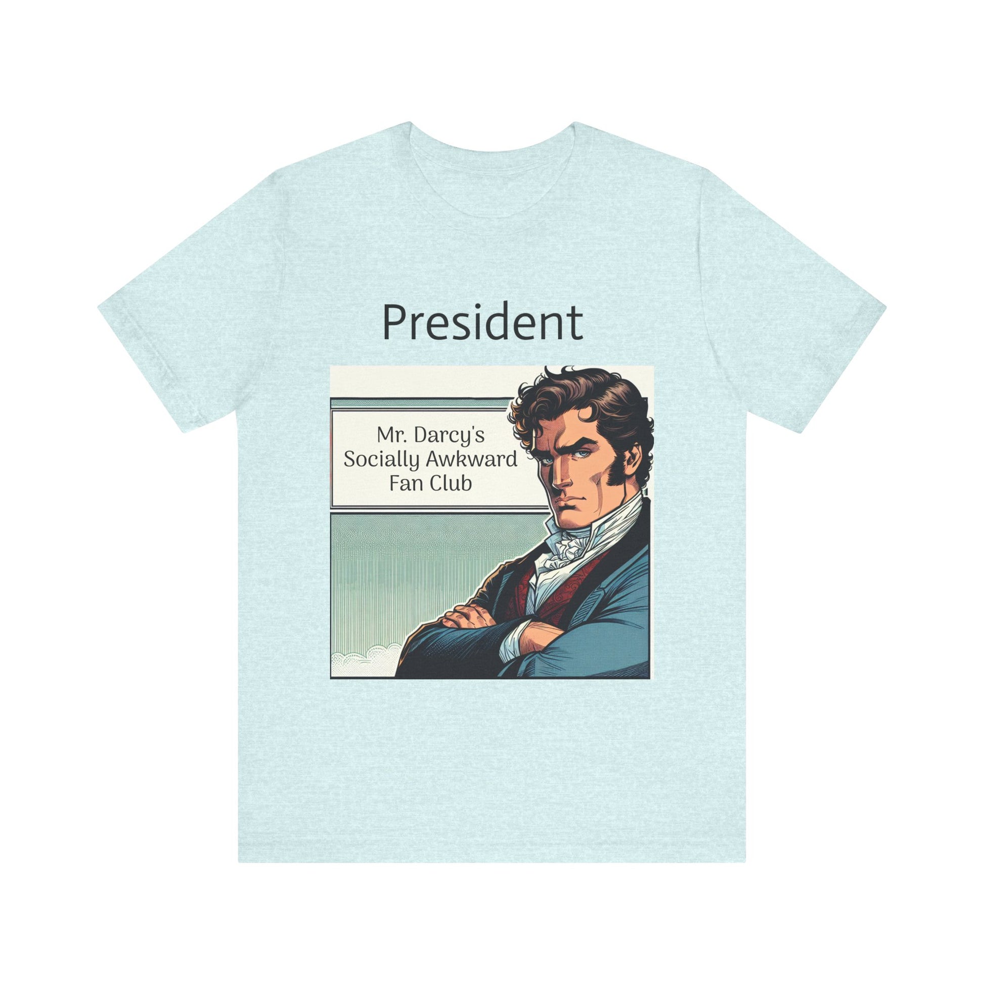 This "Mr. Darcy's Socially Awkward Fan Club" classic unisex jersey short sleeve tee fits like a well-loved favorite. Soft cotton and quality print make users fall in love with it over and over again. These t-shirts have-ribbed knit collars to bolster shaping. The shoulders are tapered for a better fit over time. Dual side seams hold the garment's shape for longer.