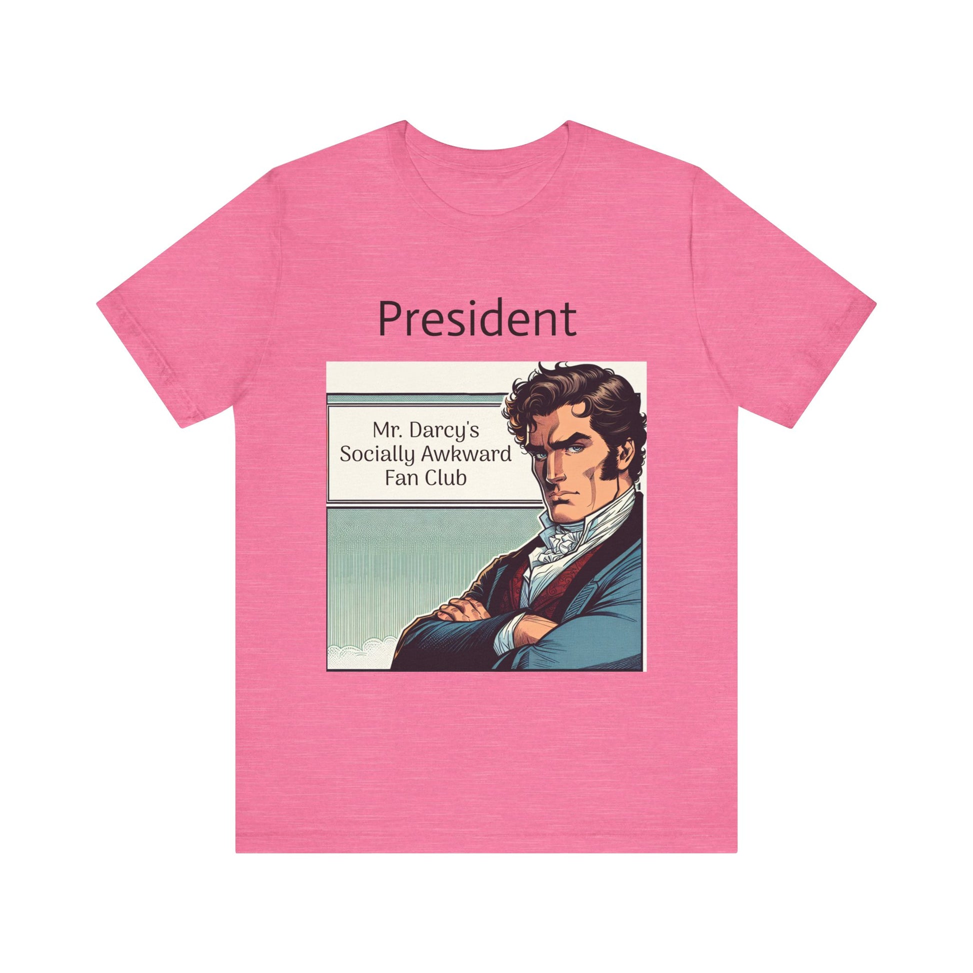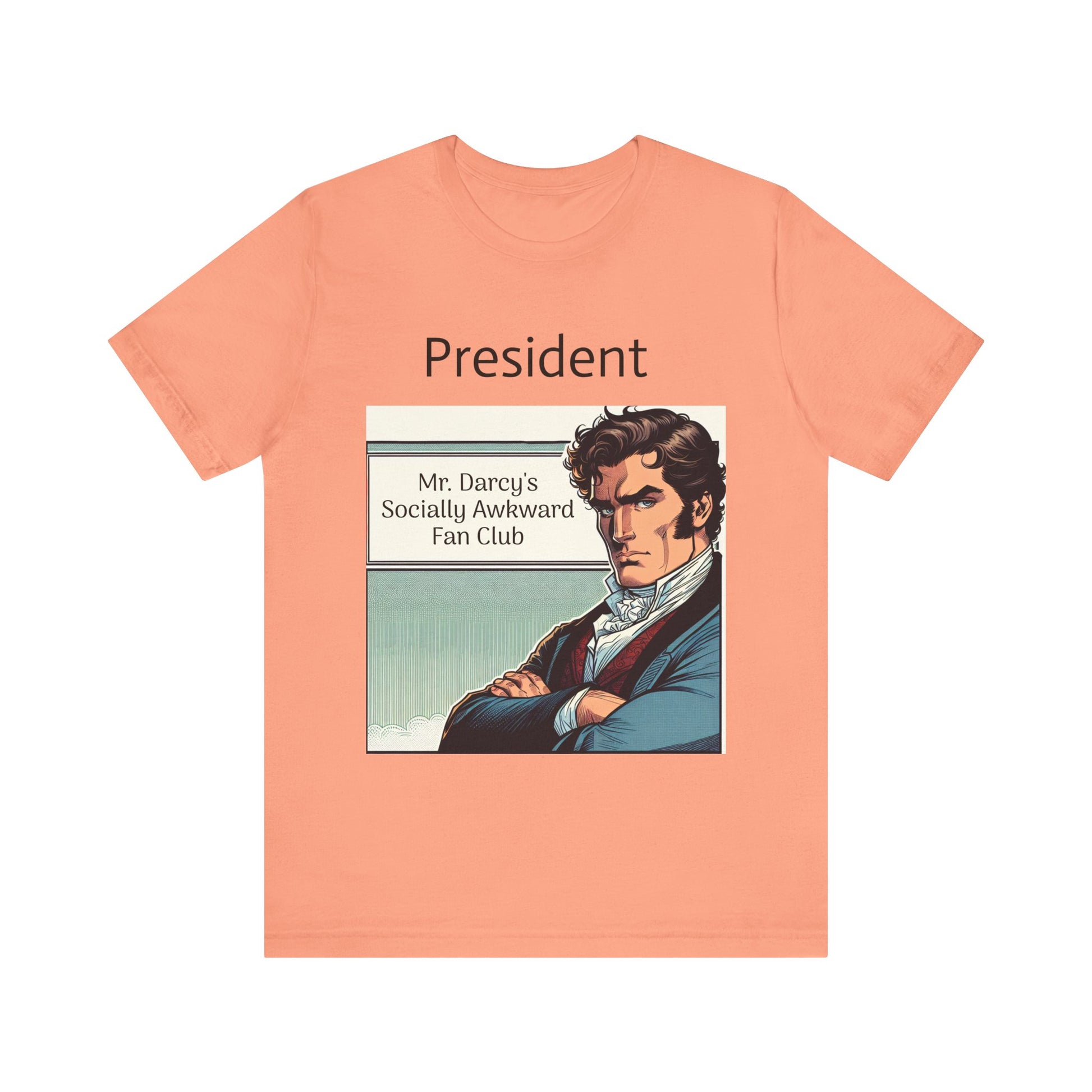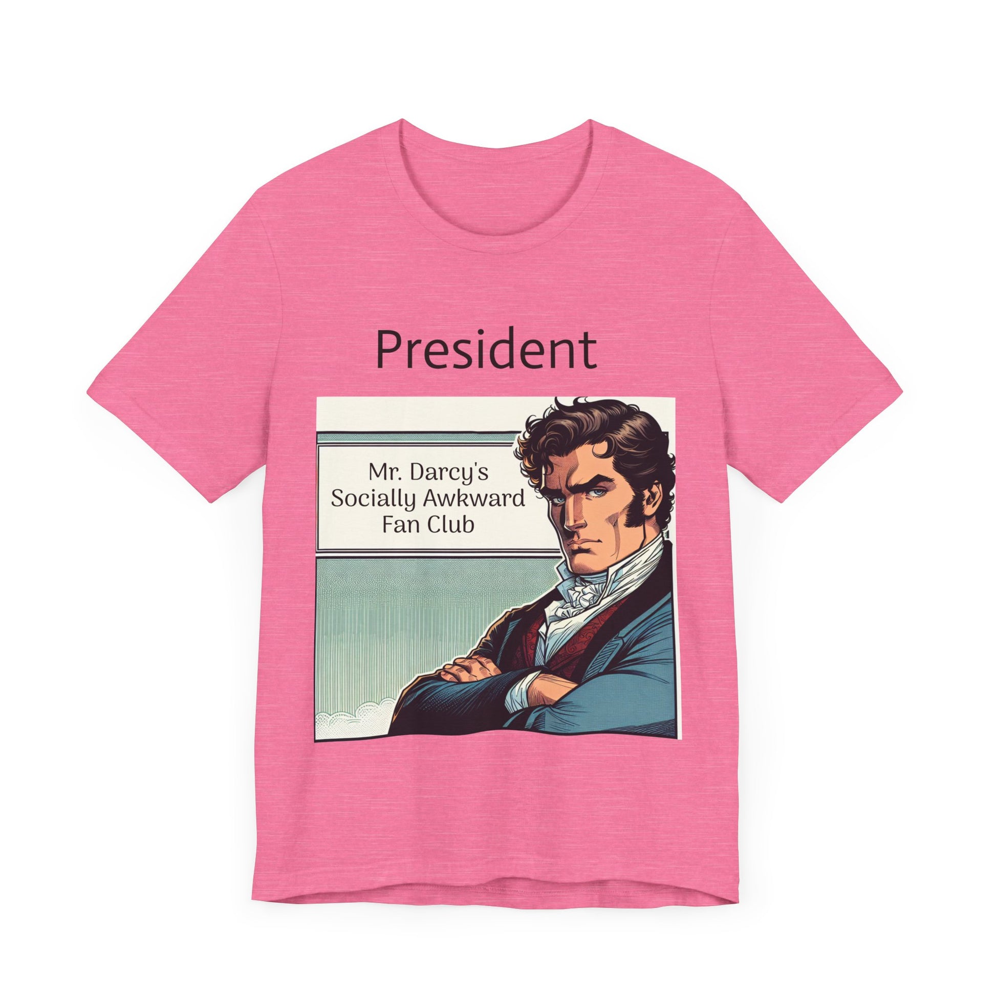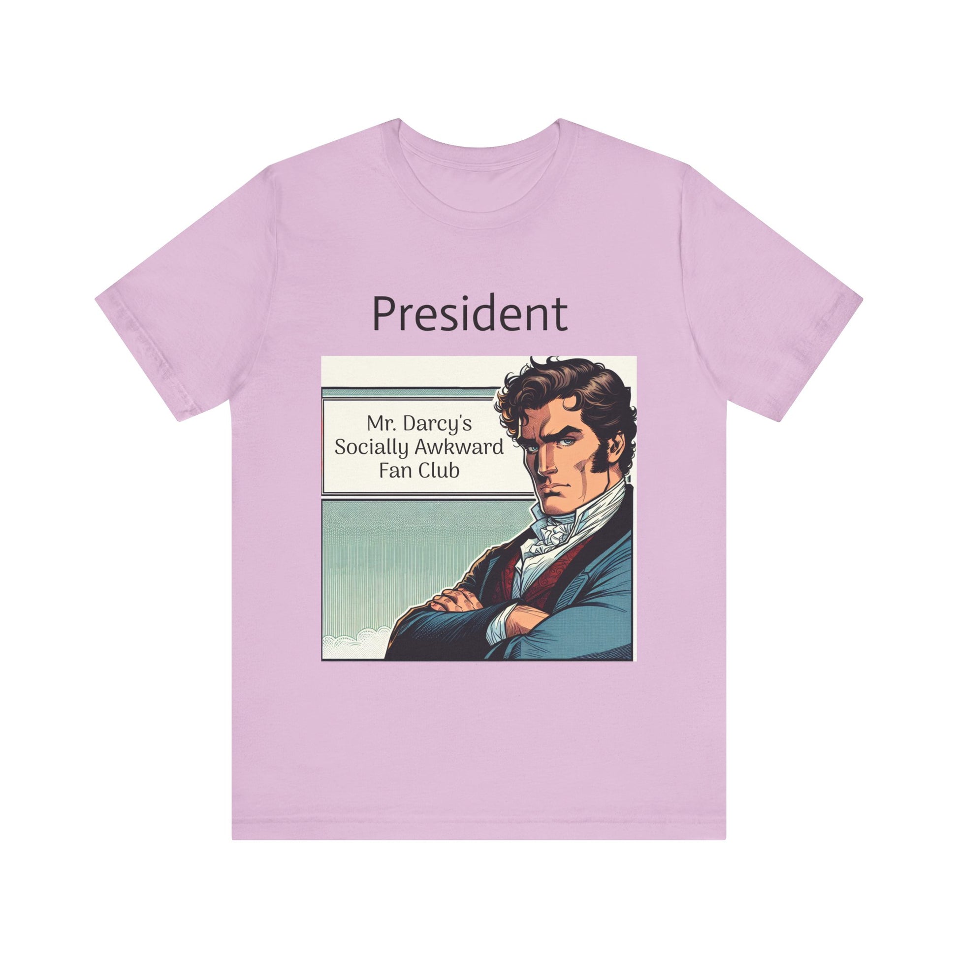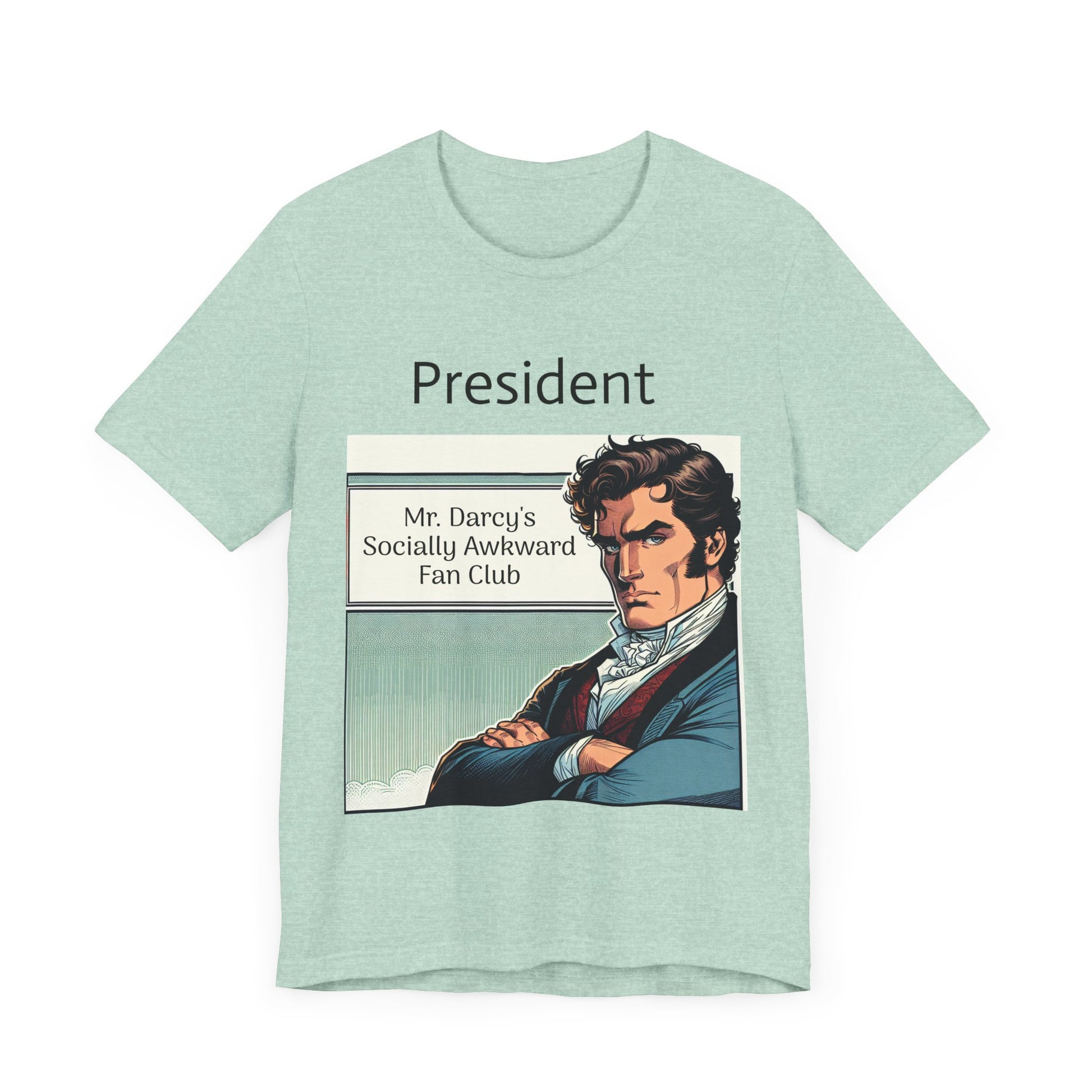 This "Mr. Darcy's Socially Awkward Fan Club" classic unisex jersey short sleeve tee fits like a well-loved favorite. Soft cotton and quality print make users fall in love with it over and over again. These t-shirts have-ribbed knit collars to bolster shaping. The shoulders are tapered for a better fit over time. Dual side seams hold the garment's shape for longer.